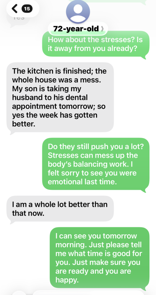 Her family is putting big stresses on her. At 73-year-old now, she still has to take care of her disabled heavy husband, her sons’ families and grandchildren! Even when she was felling down twice and broke her foot’s bone in year 2025, she still got no enough rests or good care of herself! From 11/28/25~12/3/25, she had to move out and slept uncomfortably in her car every night for only 3~4 hours under cold temperature because of the kitchen was under changing. I have told her she should learn to be lazy and live cozily, no longer take care of other people or lead a slave-like life. She told me she would try to manage them well.